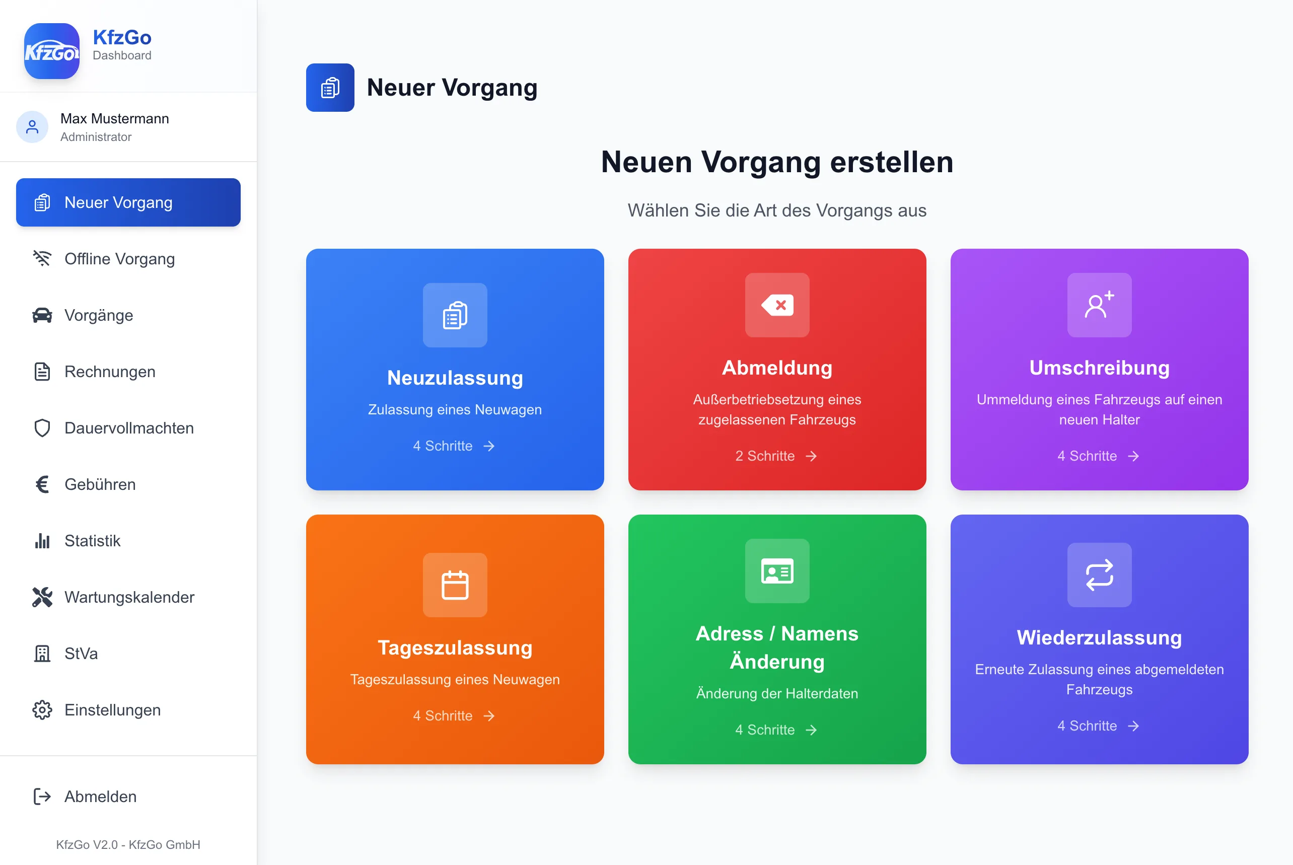 Sie sind startklar und können KfzGo nutzen